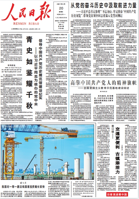 參建??谛潞8蹍^旁的新海滾裝碼頭客運綜合樞紐站項目(人民日報2021年6月20日頭版)