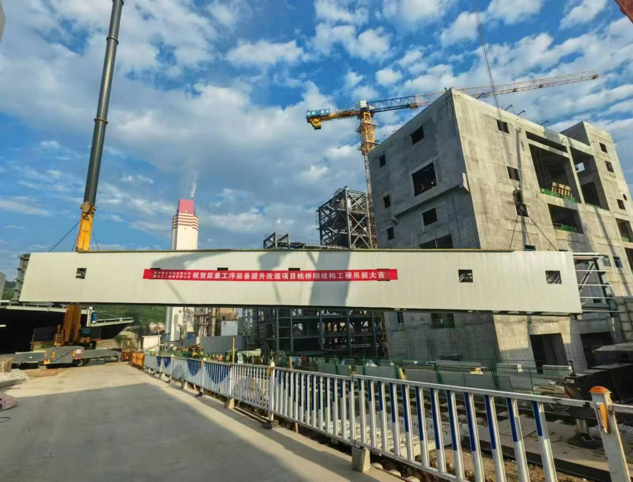 2024年8月19日上午,在業主、監理、總包等各單位領導及全體施工人員的共同見證下,由陜西建設鋼構有限公司承建的陜化公司尿素工序裝備提升改造項目(00831A)大型棧橋吊裝順利完成,標志著該工程施工關鍵節點性工程取得重大進展,為后續工程施工建設奠定了堅實基礎本次吊裝的831A棧橋,地處大顆粒尿素813樓與包裝839樓之間,橫跨火車運輸鐵路,施工區域吊裝可利用場地極為有限,跨度距離較大等難點,其鋼桁架棧橋總長度約47.65m,總重量約為57T,鋼桁架及附屬起吊鎖具達60T,為保證吊裝作業的安全性和高標準,施工前項目部迅速組織管理人...