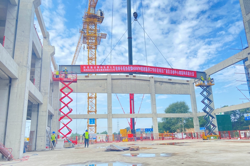 建設鋼構順利完成彬長礦業CFB示范項目廠前區活動中心屋面鋼梁首吊