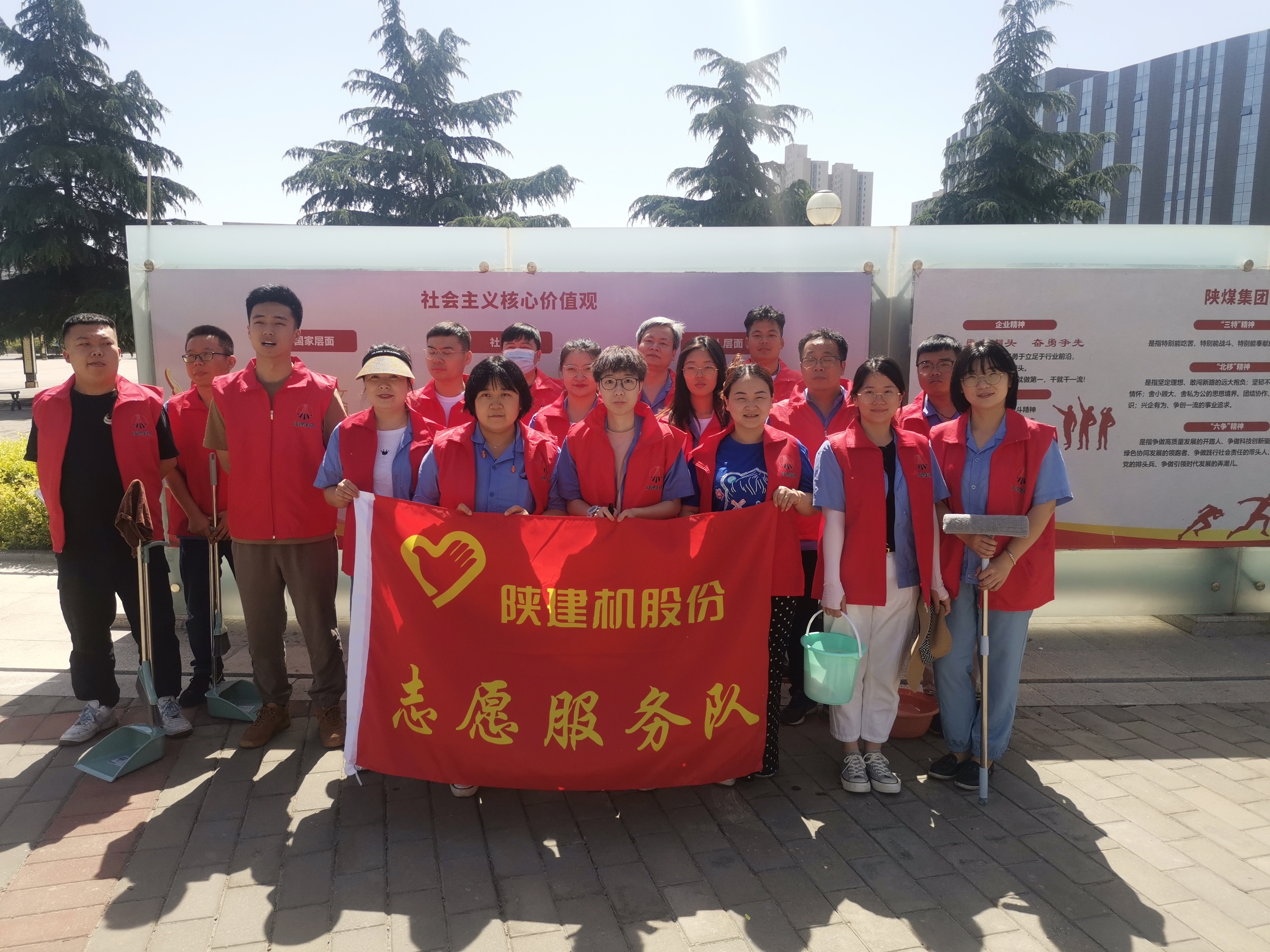 今年以來,陜建機股份扎實推進志愿服務工作,志愿服務品牌逐漸深入人心,志愿服務活動形式也更加豐富多彩,從靚化文化長廊,到服務“核酸檢測”,從職工福利物資發放,到便民利民的清涼小站……一道道色彩斑斕的力量從各個車間部室涌現出來,“陜建機藍”們化身“志愿紅”“防疫白”“健康綠”,每種顏色都迸發著蓬勃力量,在陜建機股份園區繪制成美好風景線?!爸驹讣t”扮靚園區展文明樹新風文化展板是教育引導職工的重要輿論陣地,文化廣場是展示公司良好形象的重要窗口,為加強精神文明建設,美化園區環境,志愿服務隊組織開展了“亮化文化展板 靚麗園...