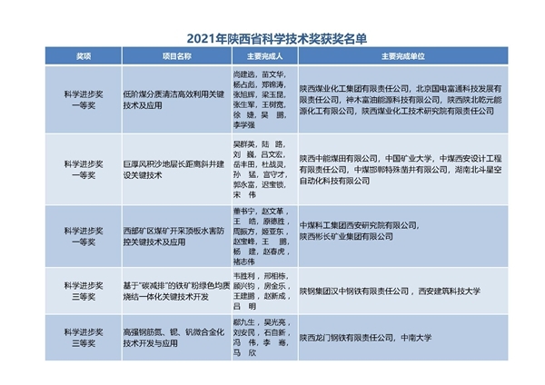 陜煤集團5項科技成果榮獲2021年度陜西省科學技術獎